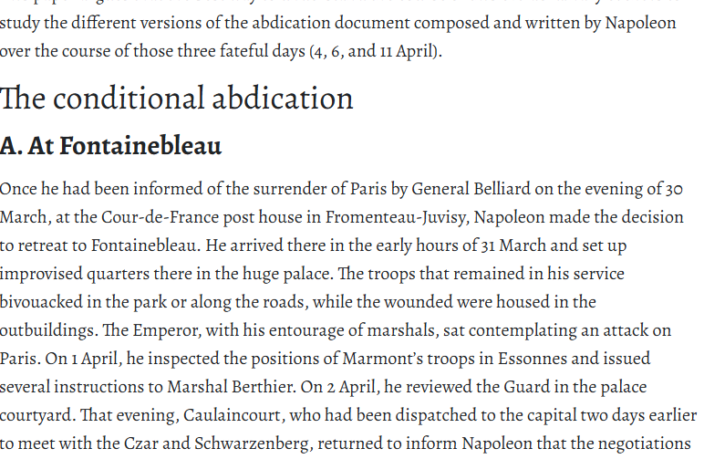 FR>EN translation of history article by Charles-Éloi Vial for Npaoleonica: Napoleon I’s three abdication declarations